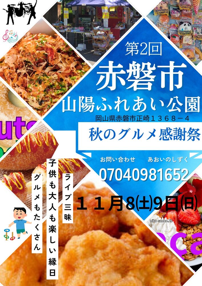 岡山山陽ふれあい公園 SCHEDULE 2025/11/08(土) 山陽ふれあい公園 地図を表示 11/8(土) 📍場所山陽ふれあい公園(岡山県赤磐市)⏰10:00~16:00🛍物販14:30~16:00入場無料/閲覧無料 🅿️あり URLをコピーする 報告する
